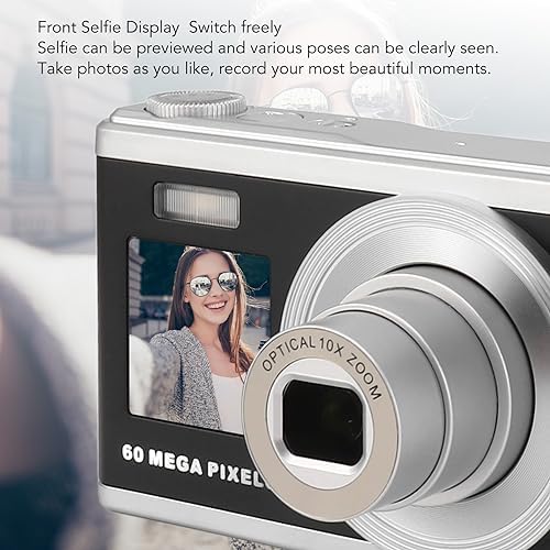 Cámara Ultra HD 4K de 60 MP con Enfoque Automático con Zoom óptico de 10x, Antivibración, Compacta y Portátil, Pantalla Dual, Película de unToque, Subpantalla HD para Selfies,
