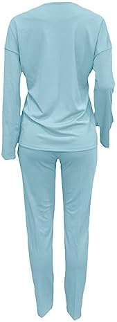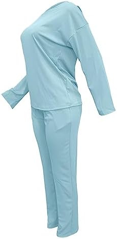 Conjunto de Pantalones de Manga Larga cómodos Chaqueta Mujer Dos Piezas Elegante Casuales de Color sólido con Cuello Redondo para Mujer Ladies