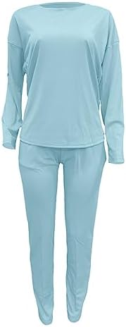 Conjunto de Pantalones de Manga Larga cómodos Chaqueta Mujer Dos Piezas Elegante Casuales de Color sólido con Cuello Redondo para Mujer Ladies