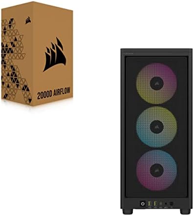 Corsair iCUE 2000D RGB Airflow Mini-ITX – Factor de Forma Mini-ITX – Paneles de Malla de Acero – Soporte de GPU de Tres Ranuras – 3 Ventiladores AF120 RGB Slim incluidos – Controlador iCUE Lighting