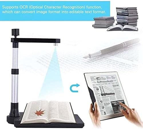 Altura ajustable: (30-39 cm) y máx. el tamaño de escaneo es A3 (extendido) o A4 (no extendido). Una vez capturadas, las imágenes se pueden optimizar ajustando el brillo, la saturación, el contraste, la nitidez, etc.