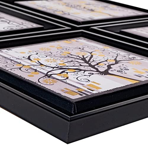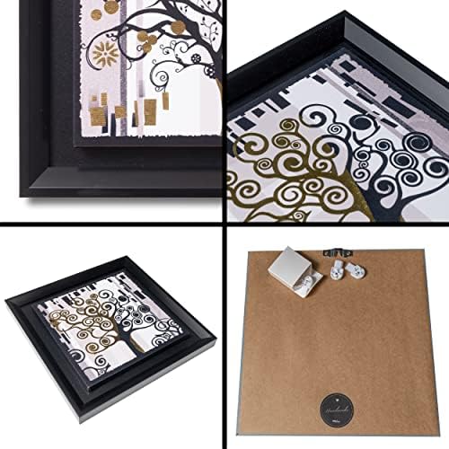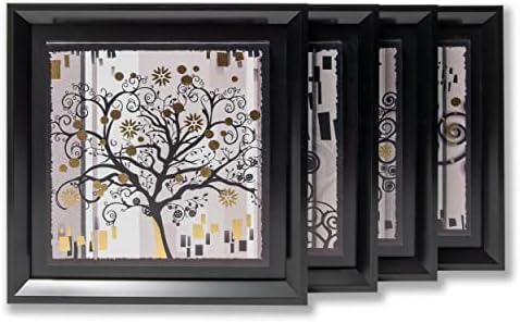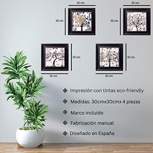 DekoArte – Cuadros Decoracion Salon Modernos ARBOL DE LA VIDA NEGRO ORO 30×30 cm x4 piezas – Set de Cuadros con Marco Negro.