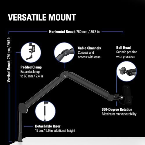 Elgato Wave Mic Arm – brazo articulado profesional con ranuras para cables, abrazadera de mesa, adaptadores de rosca, totalmente ajustable, ideal para podcasts, streaming, juegos, oficina, grabación