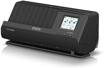 Contenido del envío: 1 escáner de red ES-C380W, escáner de documentos compacto en negro, apto para diferentes formatos con tecnología de protección de papel de Epson