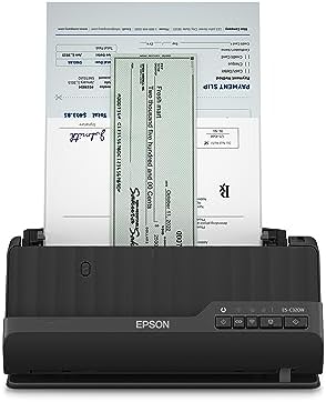 Contenido del envío: 1 escáner Wi-Fi ES-C320W, compacto escáner de documentos en negro, apto para diferentes formatos con tecnología de protección de papel de Epson