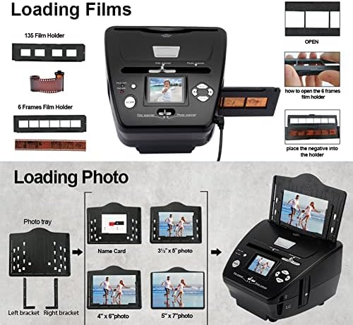 Convertidor más rápido: la operación toma solo de 1 a 2 segundos, operación independiente, no se necesita computadora. No es necesario calentar, calibrar ni pasar el cabezal de escaneado, escanea negativos/diapositivas de 35 mm y 135 mm y escanea fotos de tamaño 3 1/2 x 5 pulgadas, 4 x 6 pulgadas y 5 x 7 pulgadas, pantalla a color de 2,4 pulgadas, compatible con Mac y PC