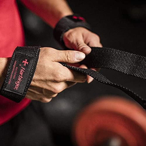 Harbinger padded cotton Lifting strap. La ayuda de agarre refuerza el agarre en la barra para que pueda levantar más peso. Soporta las manos, muñecas y antebrazos