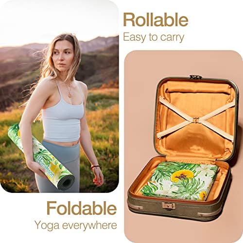 Homaisson Tapete de yoga de gamuza vegana: tapete de yoga plegable de 4 mm para mujer, tapete de ejercicio de TPE antideslizante, tapete de fitness con impresión ultra absorbente, 72 pulgadas de largo