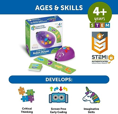 Learning Resources Set de Actividades de Stem – ratón Robot, juguete de codificación temprana sin pantalla para niños, regalos para niños y niñas, 4 años