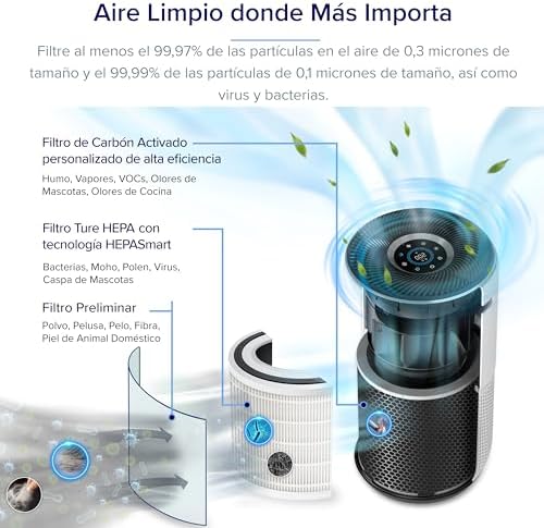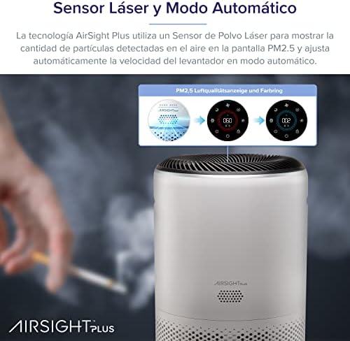 SENSOR LÁSER + PM2.5 VISUABLE–¡EXPERTO DE AIRE! Con la tecnología AirSight Plus, puede monitorear efectivamente la calidad del aire en tiempo real, ajustarse automáticamente y mostrar la calidad del aire mediante diferentes colores, ¡Disfruta de un medio ambiente saludable fácilmente!
