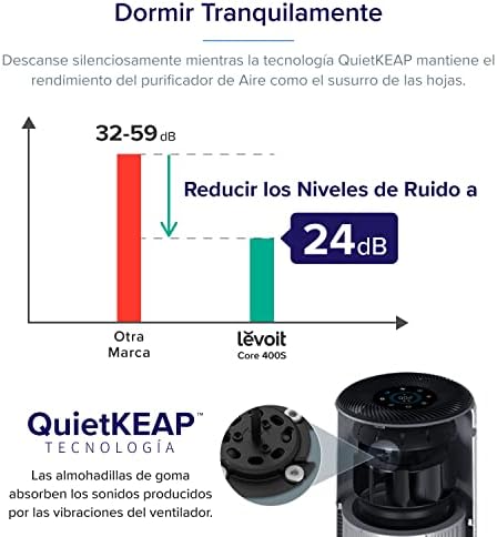 TECNOLOGÍA QuietKEAP + 24dB–¡SÚPER SILENCIOSO! ¿ Afectará el trabajo y el sueño? ¡Claro que no! Como Levoit purificador de aire utiliza la tecnología QuietKEAP, si no mires la pantalla, ¡ni siquiera sabes si está funcionando!