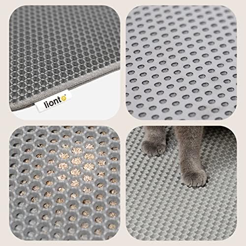lionto Alfombrilla de arena para Gatos Alfombrilla para caja de arena Almohadilla con diseño de panal Alfombrilla impermeable de doble capa recogida de la arena, 61x38x1,3 cm Gris