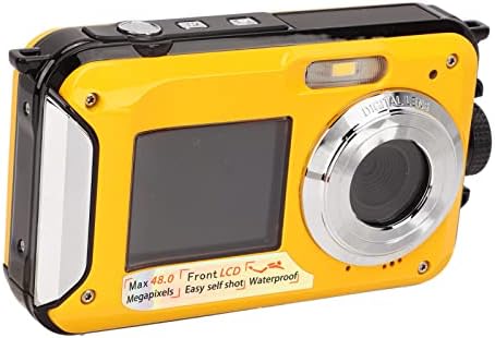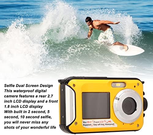 Luqeeg Cámara Digital a Prueba de Agua, 2.7K 48MP Cámara Full HD 10 Pies, Cámara con Zoom Digital 16X con Pantallas Dobles Delanteras Traseras Grabadora Video Full HD Cámara Subacuática(Amarillo)