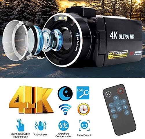 Luqeeg Videocámara, Videocámara con Pantalla Táctil IPS 3 Pulgadas, Video Digital HD Antivibración 4K con Enfoque Inteligente Rostros Videocámaras Digitales con Zoom 18X para Grabación Vídeo