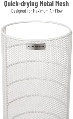 “¡Un paragüero con clase! El soporte para paraguas de cesta de alambre MIND READER es justo lo que has estado buscando. No te conformes con cualquier soporte para paraguas. Este artí está diseñado con una combinación de cableado de metal y malla metálica para crear un aspecto único. El diseño permite que más aire fluya a tus paraguas ayudando a que se seque más rápido. El cableado de metal y el diseño de malla metálica ayudan con la accesibilidad para que puedas ver y encontrar tus paraguas más fácil y rápido. Menos de 16 pulgadas de alto, no es demasiado grande como un soporte para paraguas, pero puede sostener eficazmente paraguas de diferentes tamaños. También tienes tres elegantes opciones de color. Así que puedes tener un soporte de paraguas , un soporte de paraguas blanco o un soporte de paraguas plateado El diseño es moderno, elegante y agradable a la vista. ¡Es justo lo que todo espacio necesita! Este soporte para paraguas húmedo tiene una función inferior sólida para atrapar el agua de tus paraguas secos en lugar de dejar un desorden húmedo en tus suelos. También es muy fácil de limpiar Simplemente vacía el agua que se recoja en la base y límpiala con un paño. ¡Listo! El soporte para paraguas de cesta de alambre MIND READER es súper ligero. En 1. 3 libras, es fácil de mover. Es un estante de secado portátil para paraguas Utilízalos en casa como soportes de paraguas para la entrada. Proporciona a tus invitados un soporte para paraguas húmedo para esos días lluviosos. También son soportes de paraguas perfectos para la oficina. Utiliza este artí para saludar a los clientes o guardarlo para ti. Colócalo al aire libre para un soporte de paraguas al aire libre o en interiores como un soporte de paraguas interior. Pero el soporte para paraguas de cesta de alambre MIND READER no es solo para paraguas. Se puede utilizar para sostener un bastón o un bastón.