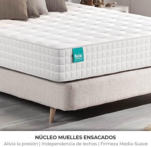 NALUI – Colchón Viscoelástico con Núcleo de Muelles Ensacados Galana 80x200cm con ViscoGel, Tejido Strech Cashmere y 3D. Altura:±26cm | Firmeza Suave | Hecho en España | Ideal Cama Articulada