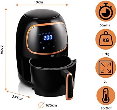 🍟 CAPACIDAD: Con una capacidad de 2L, podrás preparar hasta 5 raciones de patatas o un plato de pollo frito. Además de poder alcanzar los 200ºC, con los que podrás preparar cualquier plato y darle una textura crujiente a todas tus comidas.