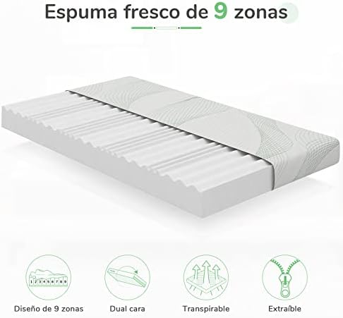 Novilla Colchones 160×190, Colchón de Espuma de 9 Zonas, Reversible Verano/Invierno, Altura 16 cm, Transpirable y Confortable, Firmeza Media, Blanco