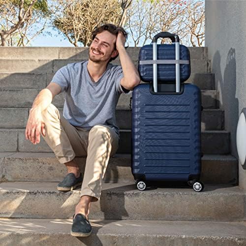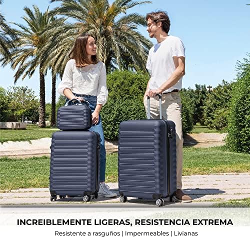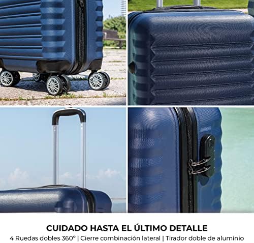 NUMADA-Juego de Maletas Rígidas 4pzs. Maleta Cabina 53cm, M. Mediana 63cm, M. Grande 75cm y Neceser. Set de Maletas de Viaje ABS Eco Friendly, 4 Ruedas Dobles, Cierre Combinación (Azul Marino)