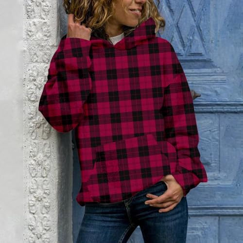 OCCOKO Cortavientos Mujer Chaqueta Casual con Capucha para Mujer Sudadera con Bolsillo con cordón y Estampado a Cuadros