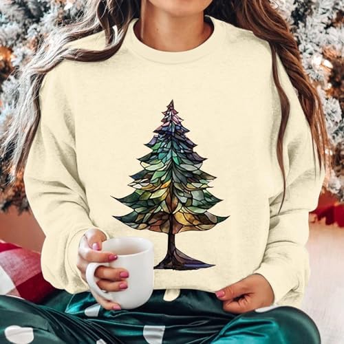 OCCOKO Navidad de Manga Larga y Cuello Redondo para Mujer De Mujer Invierno Sudadera con Estampado de árbol