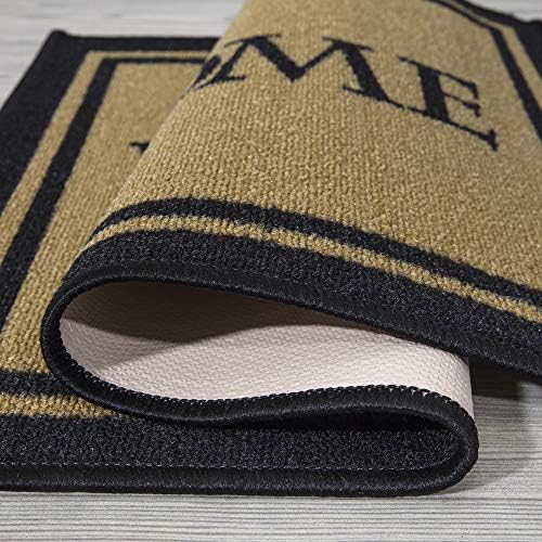 Ottomanson Doormat – Felpudo, rectangular, diseño bordeado con inscripción en inglés Welcome, 51 x 76 cm, color beis