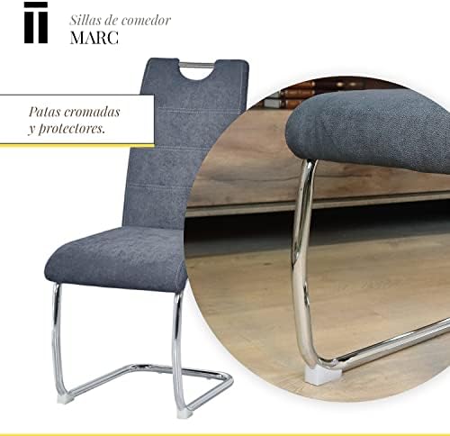 SHIITO – 4 Sillas de Comedor de Estilo Moderno – 100 x 43 x 42 cm – Modelo Marc – Pack Elegante – con Asiento Ergonómico y Patas Metálicas – Tela Gris