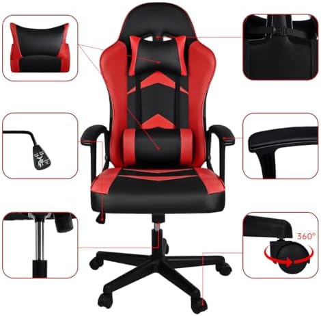 ABSOLUTA COMODIDAD ERGONÓMICA: Esta silla Gaming está diseñada para aquellas personas que buscan la excelencia en comodidad cuando se está sentado frente al ordenador en casa o en el trabajo.MATERIALES DE ALTA CALIDAD: El respaldo alto le da un fuerte apoyo para su cuello, así como el relleno de alta densidad con revestimiento de cuero suave de PU.COJIN LUMBAR Y CERVICAL DESMONTABLE.ESTRUCTURA LIGERA DE ACERO REFORZADO.