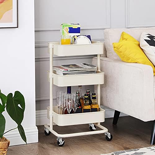 SONGMICS Carro de Almacenamiento de 3 Niveles, Estantería con Ruedas, con Estantes Ajustables en Altura, con 2 Frenos, Montaje Sencillo, para Baño, Cocina, Oficina, Blanco BSC60WT