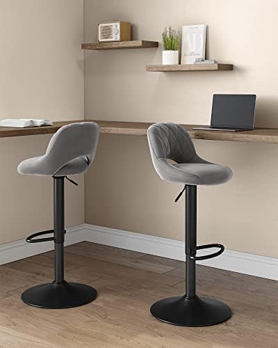 SONGMICS Taburetes Altos de Cocina, Juego de 2, Taburete Alto con Marco de Metal y Cubierta de Terciopelo, Reposapiés, Altura de Asiento Ajustable, Gris Oscuro LJB072G01