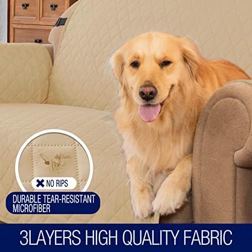 subrtex – Funda de sofá Acolchada Reversible para sofá de 2 plazas, con Correas elásticas Ajustables y Bolsillo Lateral de Almacenamiento (para sofá de Dos plazas, Arena)