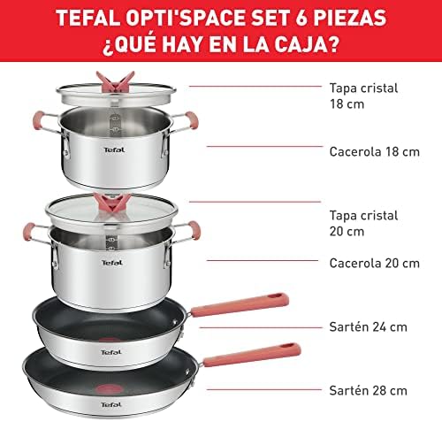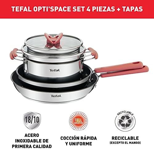 Be the first to review “Tefal Optispace – Juego de 2 Sartenes y 2 Ollas: 2 Sartenes de 24/28 cm, Cacerola de 18 cm y olla de 20 cm de acero inoxidable, 2 tapas planas, Thermospot, asas toque frío, todo tipo de cocinas”