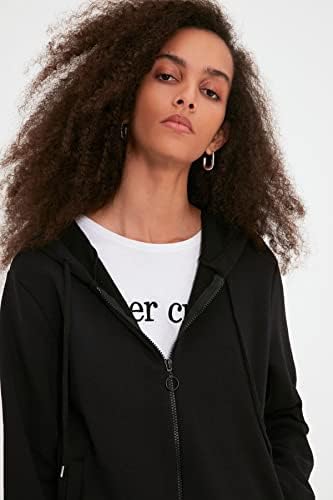 Trendyol Sudadera con Capucha Y Cremallera de Punto Negro Mujer