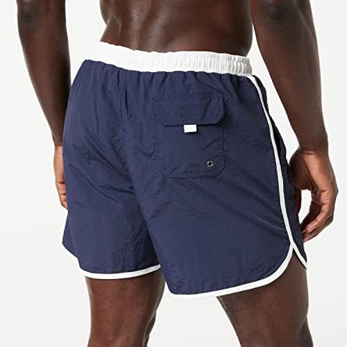 Con un bonito toque retro a la piscina. Diseño clásico de ropa deportiva: los pantalones cortos retro de Urban Classics vienen con un ajuste corto, dobladillo ligeramente redondeado en la pierna y ribetes de contraste blanco, así como una cintura elástica con cordón de ajuste. El material de nailon ligero, bolsillos laterales y un inserto de malla garantizan una comodidad óptima. Los bañadores para hombre están disponibles en los colores negro, rojo y azul marino, cada uno con contrastes blancos en las tallas XS (solo marina), S, M, L, XL, XXL (todos los colores) y 3XL, 4XL y 5XL (negro y marino).