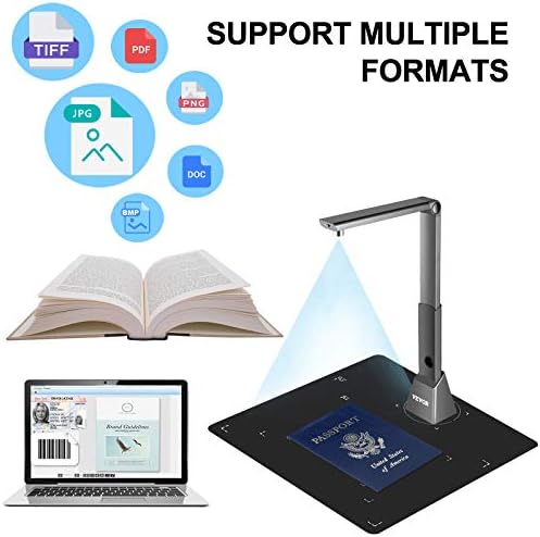 VEVOR Cámara para Libros y Documentos, 10 Megapíxeles Escáner de Documentos A3 con LED USB 2.0 de Alta Definición Aleación de Aluminio y Plástico ABS, Adecuado para Diferentes Tamaños