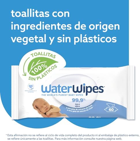 WaterWipes Toallitas húmedas Originales para Bebés, Sin Plástico, 720 unidades (Paquete de 12), 99,9% Base de Agua, y Sin Perfume para Pieles Sensibles