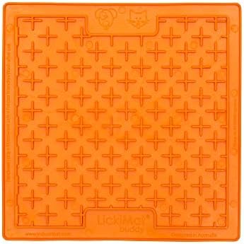 Sirve golosinas saludables: sirve yogur, mantequilla de maní, purés, untables y todo tipo de golosinas orgánicas y saludables. La comida se asienta en la superficie de la alfombrilla, lo que ralentiza la alimentación drásticamente y prolonga el disfrute. Menos calorías, golosinas más saludables y mayor duración. Tres patrones de superficie: LickiMat Playdate (cuadrados) es perfecto para pequeñas croquetas, carne cruda o pescado. Chupete LickiMat (puntos) para alimentos que gotean y Buddy (cruzes) para dulces gruesos y untables.