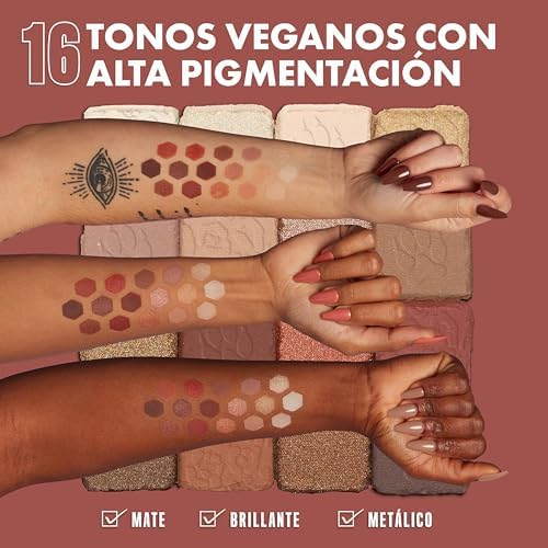 Disfruta creando todo tipo de looks con la paleta de sombras de ojos Ultimate Shadow Palette. Cada paleta incluye 16 sombras de ojos ultra-pigmentadas, con una textura sedosa y fáciles de difuminar en acabados mate, brillante y metalizado. Las posibilidades de combinación de colores son infinitas y son adecuadas para todos los tipos de looks, desde los más intensos hasta los más neutros, y para todos los tonos de piel. Estas sombras de ojos profesionales cuentan con acabados mate, brillantes y metalizados. Modo de empleo: aplicar el producto sobre el párpado con los dedos o con la ayuda de un pincel, difuminar varios tonos diferentes para conseguir profundidad e iluminar los ojos. Su fórmula 100% vegana no transfiere ni emborrona.