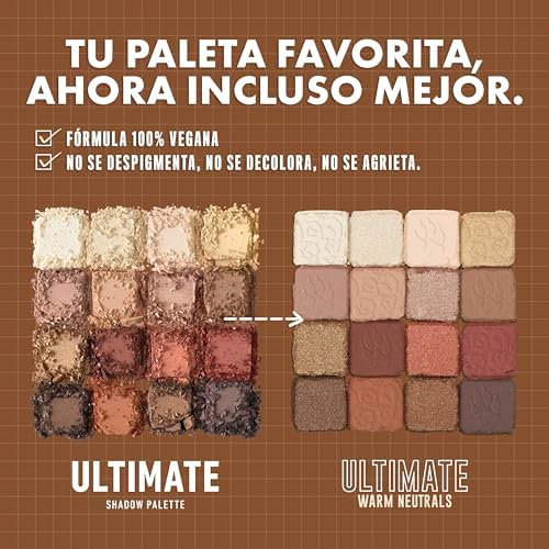 Contenido: 1x NYX Professional Makeup Paleta de Sombras de Ojos Ultimate Shadow Palette, 16 sombras ultra-pigmentada, Larga duración, Fórmula Vegana, Warm Neutrals