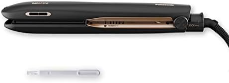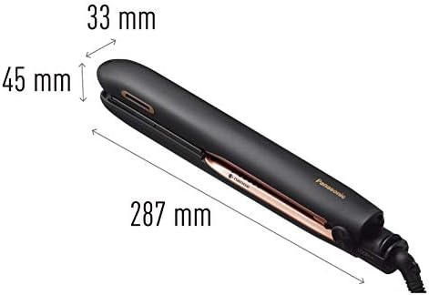 Obtenga un cabello brillante y liso con la plancha para el cabello Nanoe Ceramic de Panasonic EH-HS9. La plancha para el cabello Panasonic EH-HS9 utiliza la tecnología Nanoe para hidratar el cabello y reducir la estática a medida que lo peina, para un acabado liso y elegante. Está comprobado que mejora el brillo visible de su cabello y proporciona un rendimiento de alisado del cabello un 20% mejor. Probado en proDERM, Alemania 2017 , rn comparación con el modelo anterior. Los alisadores de cabello Panasonic EH-HS99 resolverán cualquier problema con el cabello encrespado, con las partículas de tecnología Nanoe. Las partículas de nanoe no se crean a partir de los agujeros de aire desde la punta de las placas de cerámica. Las partículas de Nanoe hidratan, hidratan y nutren tu cabello y reducen la estática a medida que peinas para un cabello hermoso y brillante. Las pruebas de ProDERM Alemania (2017) demostraron que la tecnología Nanoe evita la evaporación de la humedad y el daño del cabello. Por lo tanto, se ha demostrado que mejora el brillo visible en el cabello. Las placas recubiertas de cerámica mejoran el rendimiento de alisar el cabello, ya que tiene un menor potencial para quemarlo. Además, las placas recubiertas de cerámica proporcionan protección, ya que no permiten que se rompan o enganchen a medida que el cabello pasa entre las placas. Las placas recubiertas de cerámica están equipadas con un calentador estable avanzado, que evita que las placas bajen su temperatura y aumenta el rendimiento de enderezamiento en un 35%.