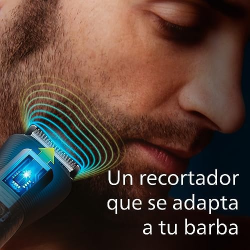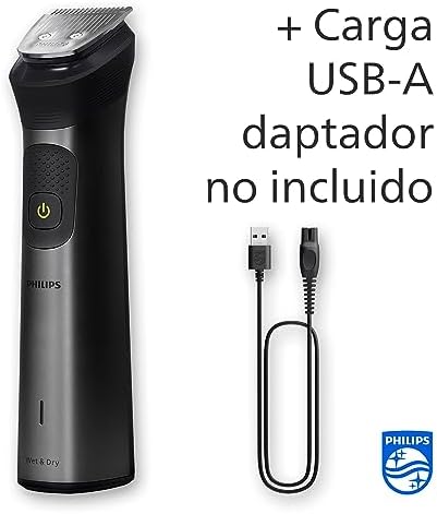 Este recortador todo en uno ofrece 15 herramientas para recortar y perfilar cómodamente el vello facial, recortar el pelo y arreglar el vello corporal, con 26 posiciones de longitud de 0,5 a 20 mm. Crea tu look personal con este versátil recortador, con cuchillas autoafilables de acero inoxidable que se mantienen afiladas como el primer día sin necesidad de lubricación para lograr un corte preciso. El peine-guía de precisión proporciona un corte uniforme en incrementos precisos de 0,2 mm con la longitud exacta que desees. Recorta el vello un 30% rápido con el cortapelos extraancho de 41 mm, que corta más pelo con cada pasada. El diseño estrecho del recortador de precisión facilita la creación de detalles finos alrededor de la boca. Limpia las mejillas, la barbilla y el cuello con la cuchilla metálica para darle el toque final a tu look. Aféitate cómodamente por debajo del cuello con el accesorio de afeitado corporal, que incluye un sistema de protección de la piel que protege las zonas sensibles. Cargar y limpiar el dispositivo es fácil y cómodo: el recortador es 100 % impermeable y, por lo tanto, se puede limpiar fácilmente bajo el grifo. La potente batería de iones de litio ofrece 120 minutos de uso, así como una opción de carga rápida en 5 minutos. Gracias al indicador de carga, batería baja y carga completa, siempre sabrás cuál es el estado de la batería. Carga USB-A, adaptador de pared no incluido.