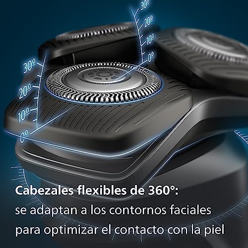 Disfruta de un contacto con la piel óptimo: gracias a unos cabezales totalmente flexibles que giran 360 grados para seguir el contorno de tu rostro y disfrutar de un afeitado cómodo y apurado