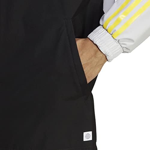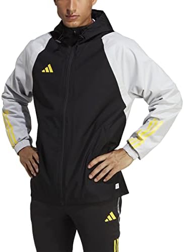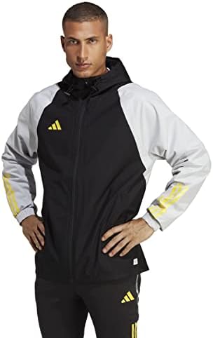 Disfruta del fútbol llueva o haga sol. Esta chaqueta adidas te mantiene preparado para saltar al terreno de juego en cualquier condición meteorológica. La capucha con cordón te permite ajustar la cobertura a tu gusto. Se ha confeccionado en un tejido que repele el agua para que puedas seguir mejorando tus habilidades. Este producto se ha fabricado con un 100% de material reciclado. Su objetivo es plantear otra solución más que ayude a eliminar los residuos plásticos.