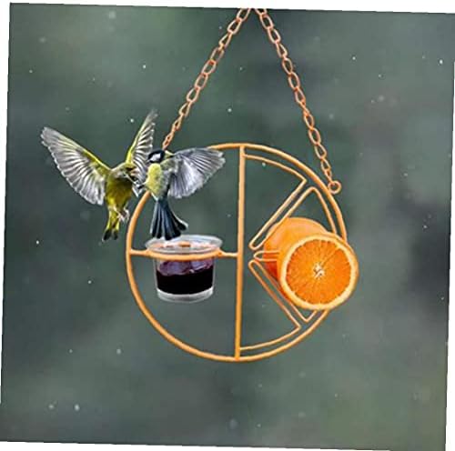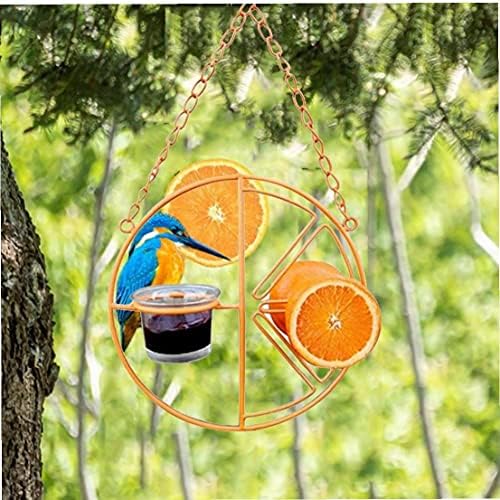 Alimentador De Aves De Oriole Colgante De Metal Fuera del Alimentador De Colibríes con Soporte De Fruta Y Vidrio De Bebida Extraíble para Tronco De Patio De Jardín (Naranja)