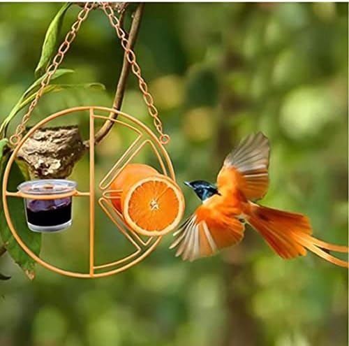 Alimentador De Aves De Oriole Colgante De Metal Fuera del Alimentador De Colibríes con Soporte De Fruta Y Vidrio De Bebida Extraíble para Tronco De Patio De Jardín (Naranja)