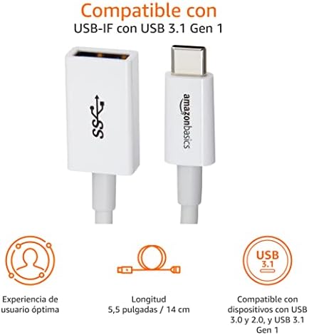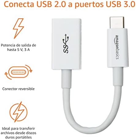 Amazon Basics – Adaptador hembra USB tipo C a USB 3.1 de 1ª generación – Blanco