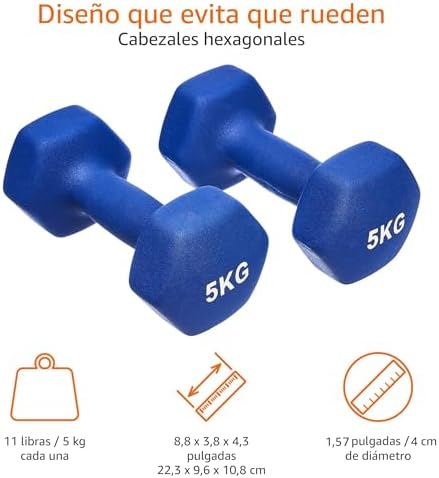Ideal tanto para principiantes como para entusiastas del fitness avanzado, el juego de 2 mancuernas de neopreno de AmazonBasics viene en una amplia gama de pesos, desde 1 kg hasta 5 kg (cada par se vende por separado). Elige la cantidad adecuada de peso según tu rutina, preferencia y número de repeticiones.
