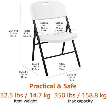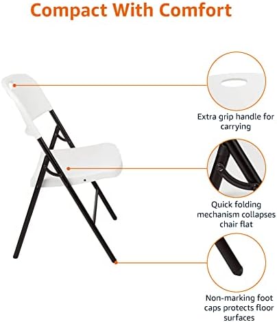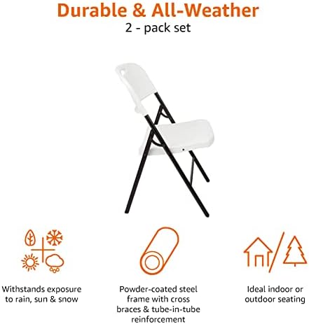 Amazon Basics – Silla de plástico plegable, capacidad de 157,5 kg, blanco, Pack de 2