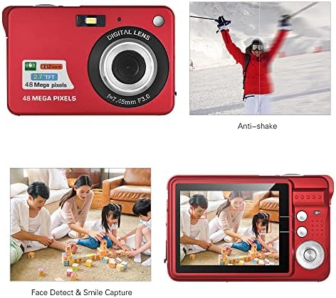 【Cámara digital multifunción】La cámara digital cuenta con varias funciones, como antivibración, detección de rostros, captura de sonrisas, disparador automático, etc. Admite tarjeta de memoria externa de clase 10 máx. hasta 128G (no incluido).