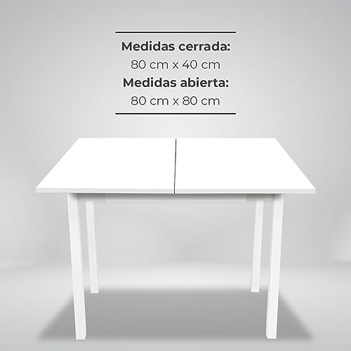 La mesa de cocina tipo libro es un producto ideal para darle un toque de estilo y elegancia a tu cocina. Esta mesa de cocina con apertura tipo libro, con cajón y con tapa de madera laminada en color Blanco es una opción muy práctica para maximizar el espacio en tu cocina. Este tipo de mesa se compone de dos partes que se abren como un libro, lo que permite expandir cuando se necesita espacio adicional para cocinar o comer. Tiene un cajón donde puedes organizar mejor tus utensilios de cocina y tenerlos a la mano para cuando los necesites. El frente del cajón laminado es del color de la tapa de la mesa y el interior es plastificado de color gris. Esta mesa de cocina tipo libro con cajón de Astimesa con estructura de madera laminada blanca es sólida y estable, lo que asegura una superficie firme y segura para todas las actividades. La tapa de madera laminada es fácil de limpiar y resistente a las manchas y al agua, lo que la convierte en una opción práctica y duradera. Es una mesa muy fácil de instalar y combinará de forma perfecta con tus muebles. Gracias a su diseño te permite desayunar o comer allí, colocar o guardar en el cajón algún utensilio de la cocina que uses a diario. Su versatilidad y diseño la convierten en una excelente opción para aquellos que buscan aprovechar al máximo el espacio disponible en su cocina. Además de ser un producto funcional, es una mesa que puedes combinar con el estilo de tu cocina porque es un producto moderno y minimalista. Esta mesa de cocina con apertura libro con cajón es ideal para cocinas pequeñas o espacios reducidos. Medidas cerrada: 80 cm x 40 cm. Medidas abierta: 80 cm x 80 cm.